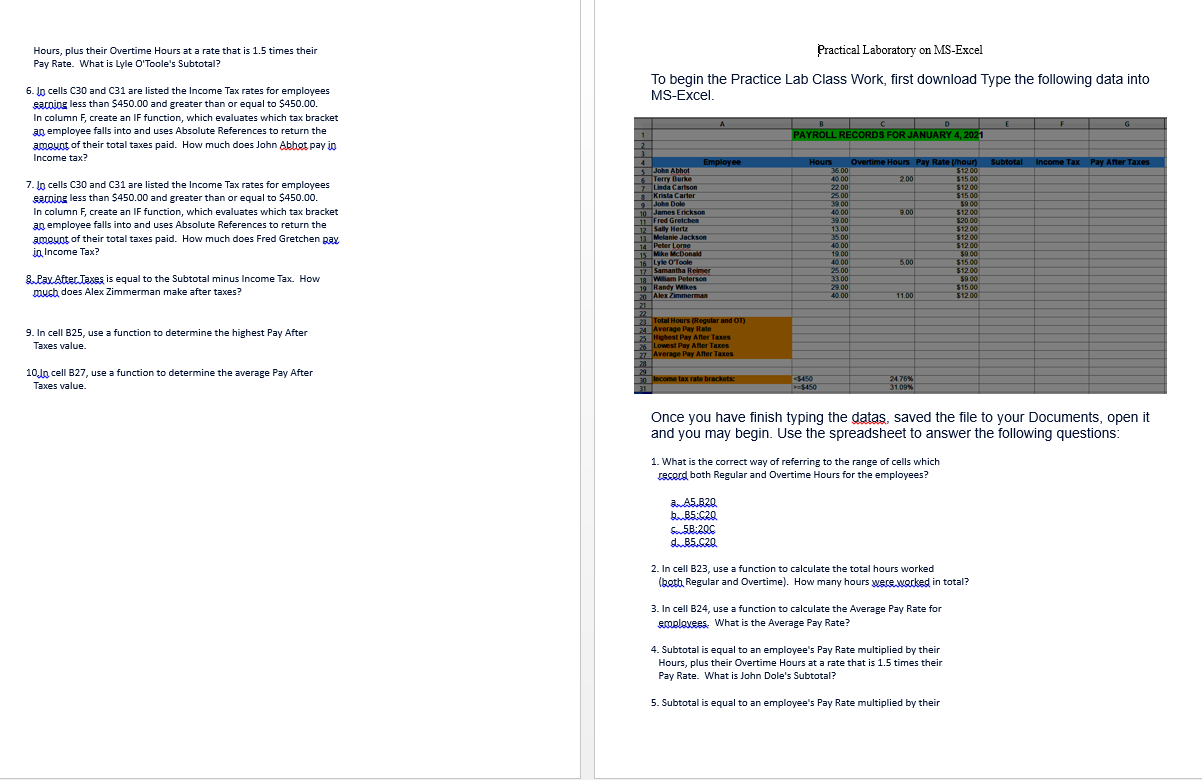Solved Practical Laboratory On Ms Excel Hours Plus Their Chegg Com